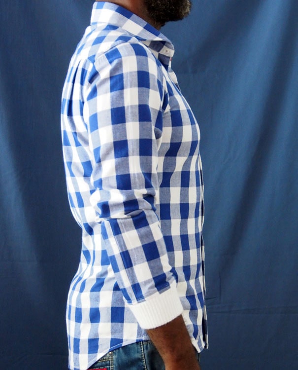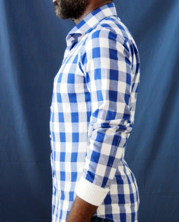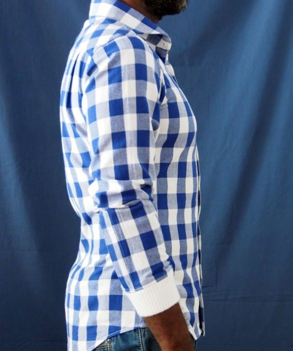 Men Tailored fit premium Cotton Gingham, classic 1/2 blue white gingham